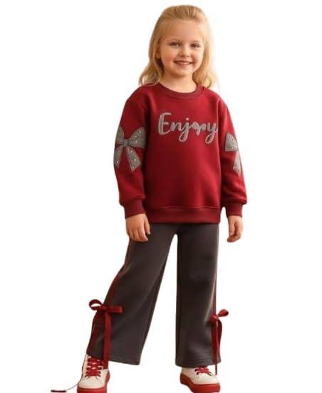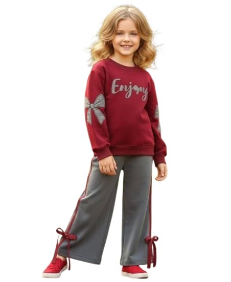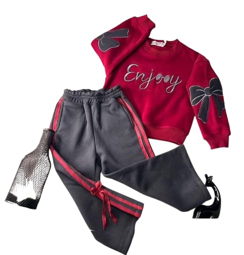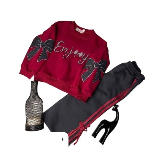 Generic - طقم ترنج بناتي قطعتين من قطعتين قميص ملتون لون أحمر بلوبره داخلية بنطلون رمادي - مقاس 6 - موديل #: 631-102