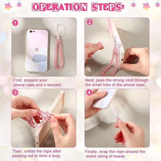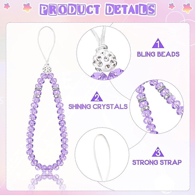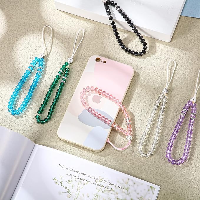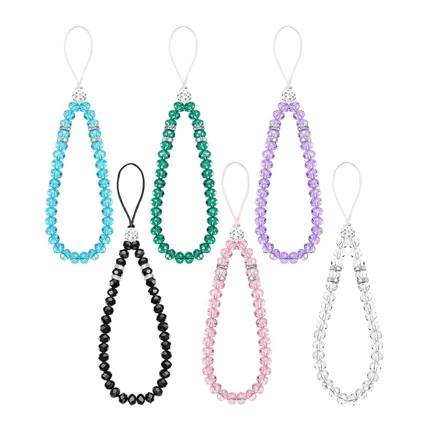 fashion mania - 6 Pieces Beaded Short Hand Wrist Lanyard Strap Crystal Beads Mobile Phone Chain for Girl Women