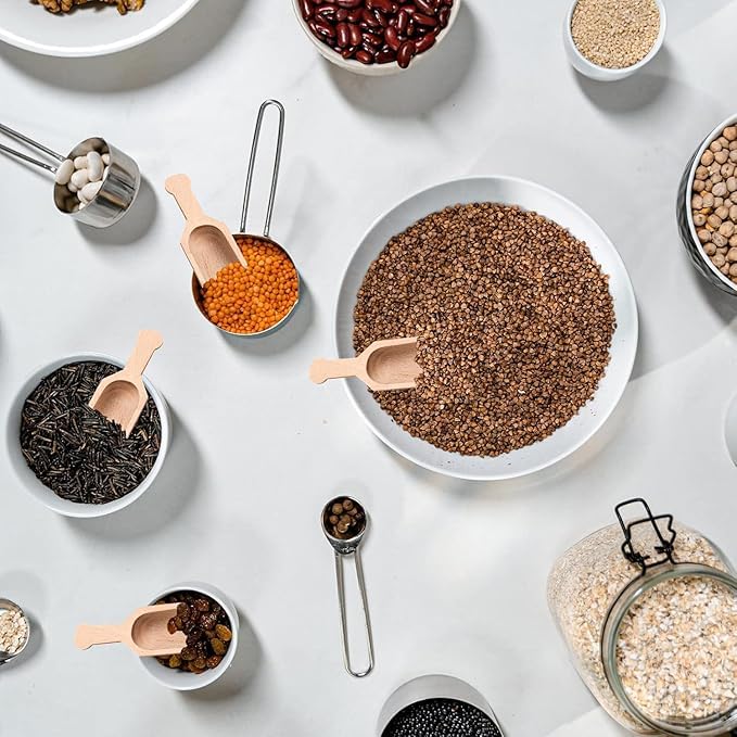 - طقم متعدد الاستخدامات: يحتوي على 6 قطع من الجاروف الخشبي بحجم ميني مثالي لتعبئة وتقديم التوابل والبهارات والبقوليات والقهوة