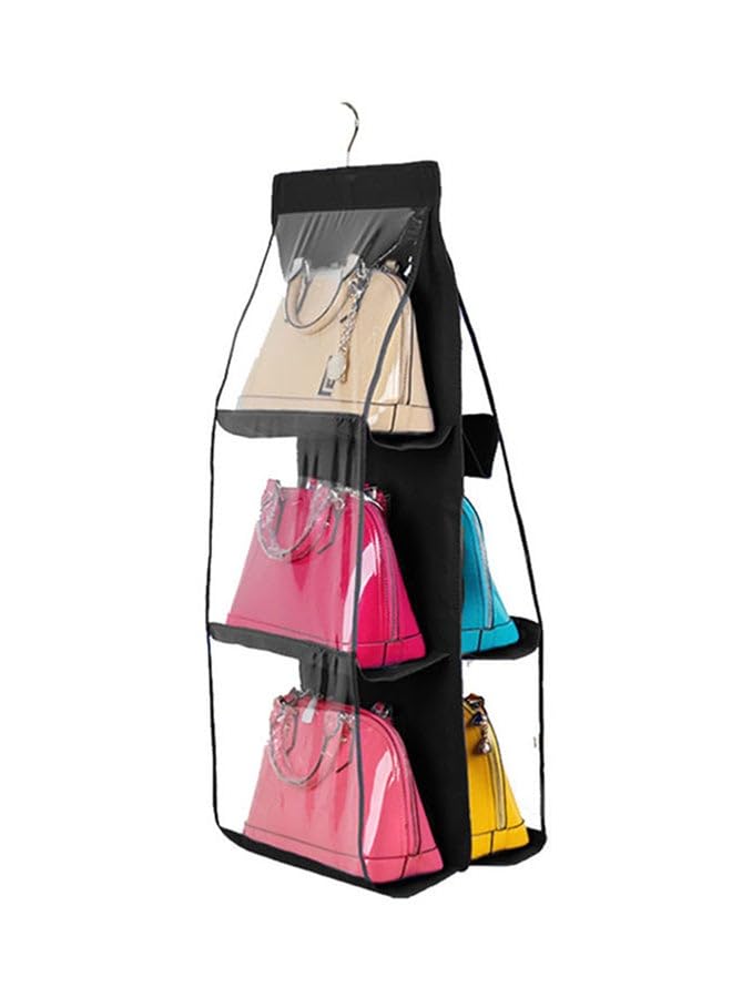 Generic - منظم شنطة يد شفاف قابل للتعليق بـ6 جيوب بلون اسود/شفاف مقاس 13.8 × 35.4 انش