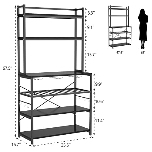 - 【6-Tier Multifunctional Storage】: This kitchen stand size 35.5''L x 15.7''W x 67.5''H. 6-tier the kitchen shelf has massive space and multipurpose shelves. The sturdy shelf can hold a microwave oven, toaster, spice, dishes, coffee bar standand, any other things you want. 6-Little hooks make it convenient to hang some cooking tools.