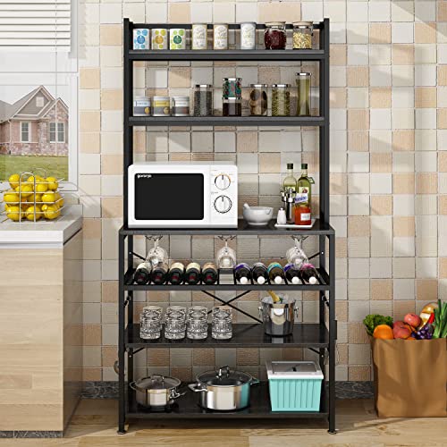 FRIZIONE - 6-Tier Kitchen Baker's Rack with Wine Rack and Wine Glass Holder, Utility Microwave Oven Stand for Spices Pots Pans Plates, Kitchen Hutch Storage Shelf Organizer Rack Coffee Bar Station with 6 S-Hooks