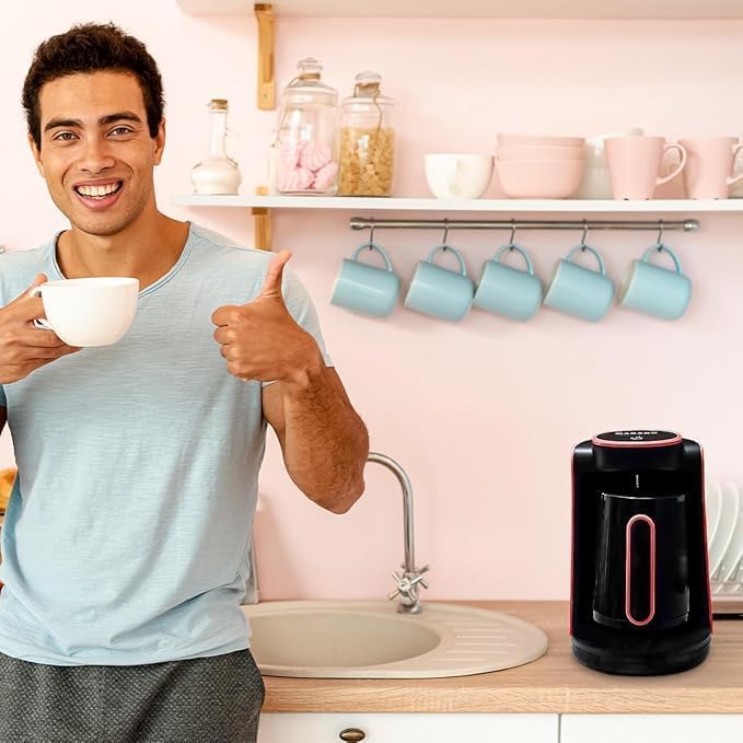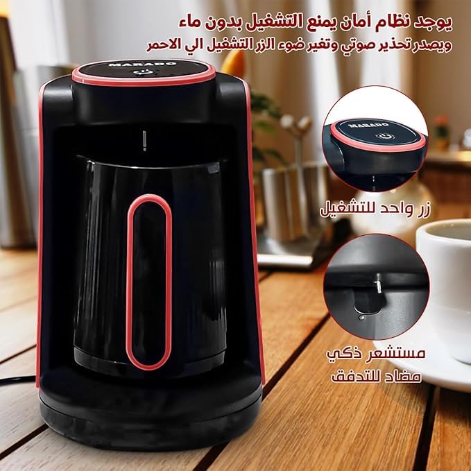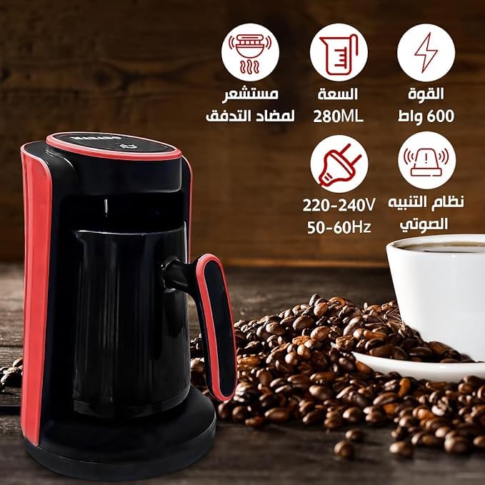 Generic - ماكينة تحضير القهوة التركية الكهربائية بقدرة 600W تكفي 4 أكواب بسعة 280 مل مزودة بمستشعر مضاد للتدفق الزائد ونظام أمان، مناسبة للاستخدام في المنزل والمكتب وأثناء السفر من LOKYBOY (اسود)
