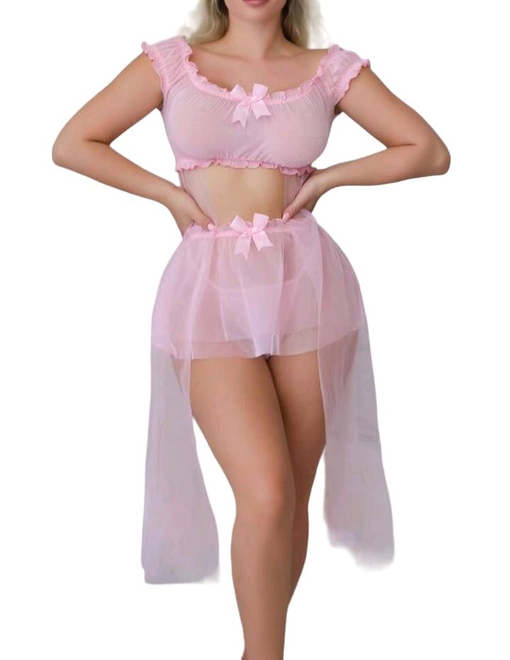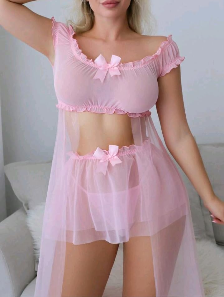 Generic - لانجيري جديد لانجري جذاب لانجري توب مشش مزخرف ببنكات أنيقه تجعل كى الملكه الانقاه باطلاله جذاب بجملك بيبي دول قميص نوم حريمى من كيان للتجاره والتوزيع كود 641