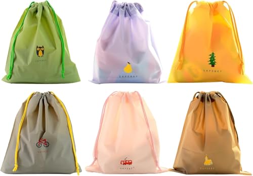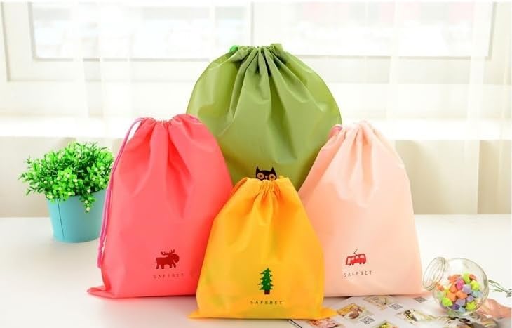 fashion mania - 6PCS Waterproof Drawstring Bag,PE Plastic Folding Sport Home Travel Storage Use