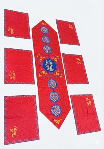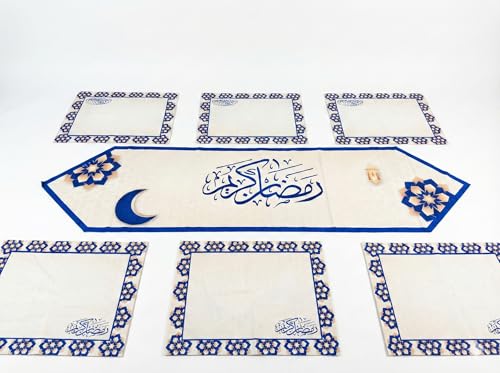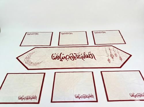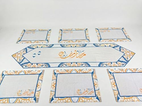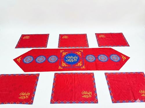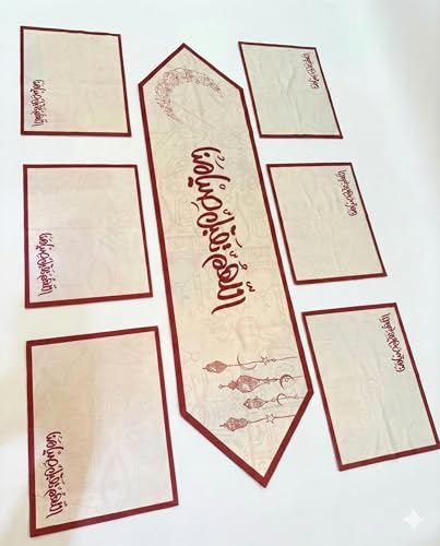 Generic - طقم مفرش سفره رمضان ،مكون من ٧ قطع ، مفرش قطعه رانر طويل مقاس ٣٥ * ١٣٥ سم، - ٦ قطع كوستر مقاس ٣٠ * ٤٥ سم المفارش متوافره ب ٤ تصاميم مختلفه