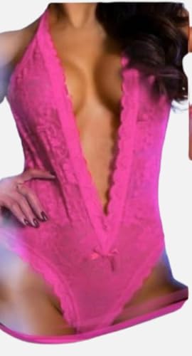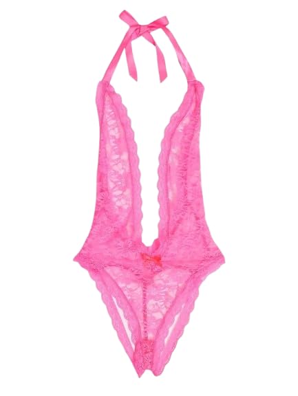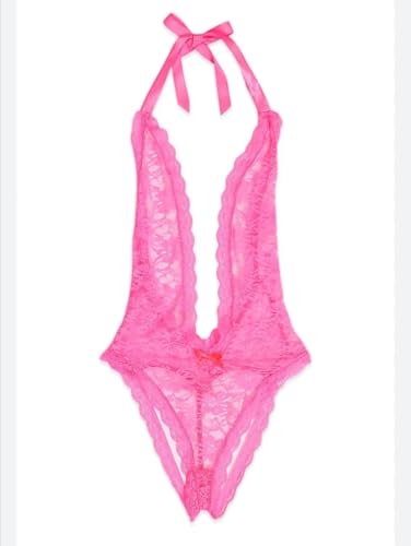 هنادي - لانجيري بيبي دول من الدانتيل الفاخر بتصميم أنثوي جذاب – لون بينك وان سايز حتى 75 كيلو موديل HN 830, One Size