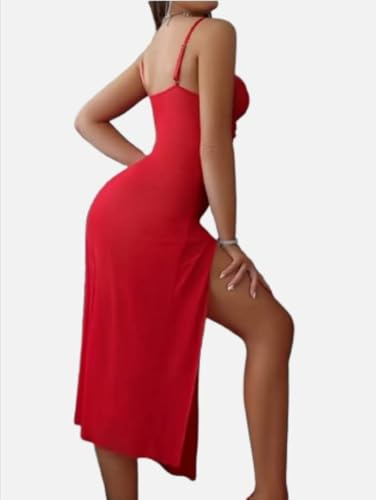 هنادي - لانجيري طويل أحمر بخامة زبدة فائقة النعومة – وان سايز يناسب حتى 80 كيلو – HN 9048
