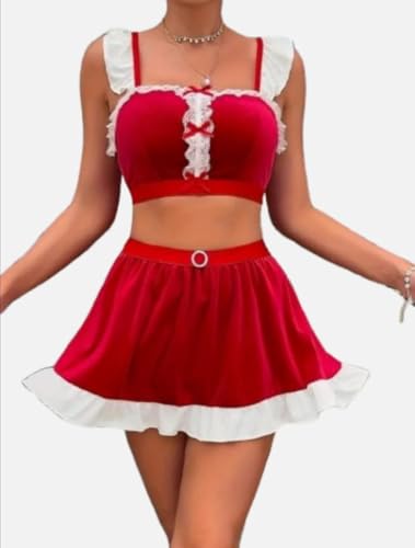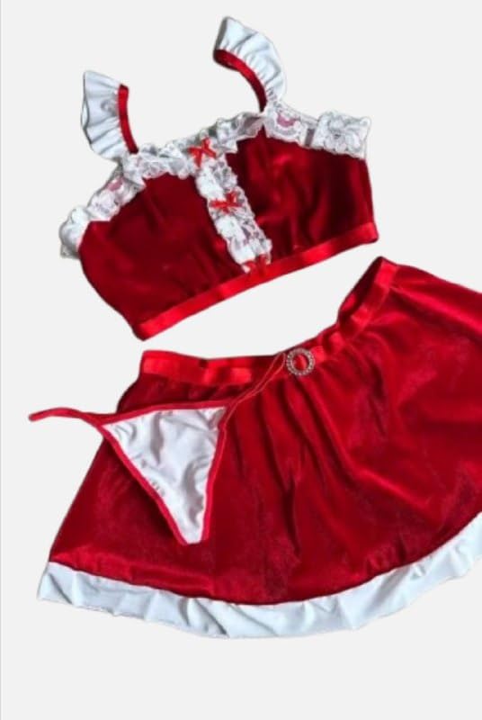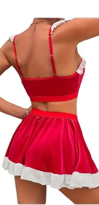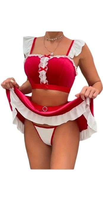 هنادي - لانجيري قطيفة أحمر بإطلالة فاخرة وأنثوية – وان سايز حتى 80 كيلو – HN 9094, One Size