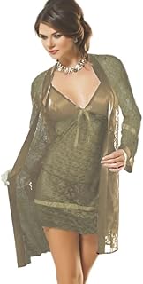 Generic - لانجري طويل قميص حمالات مطعم بدانتيل و روب شيفون مطعم بدانتيل من الأطراف (واحد مقاس ليبس لحد 85 كيلو)
