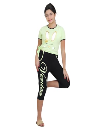 Choice N.C - بيجامة بناتي طباعة رنب تيشرت نصف كم وبنطلون قصير خامة ليكرا قطن ناعم بتصميم صيف مريح بألوان بناتي جذاب نوم والبيت كود 877