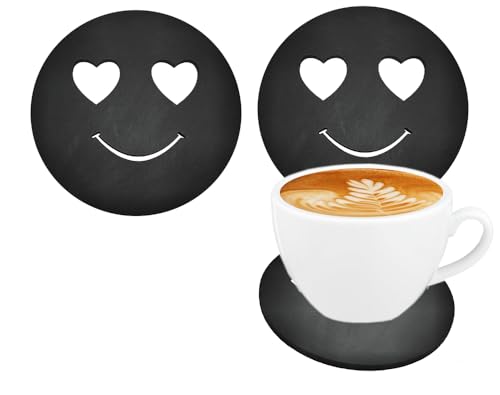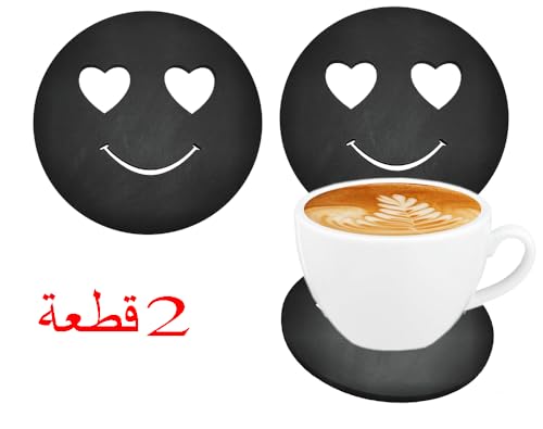 Generic - كوستر قاعدة اكواب خشب قطر 9.5 سم محفورة بالليزر اشكال - 2 قطعة - كود 7034- من رنا ستور