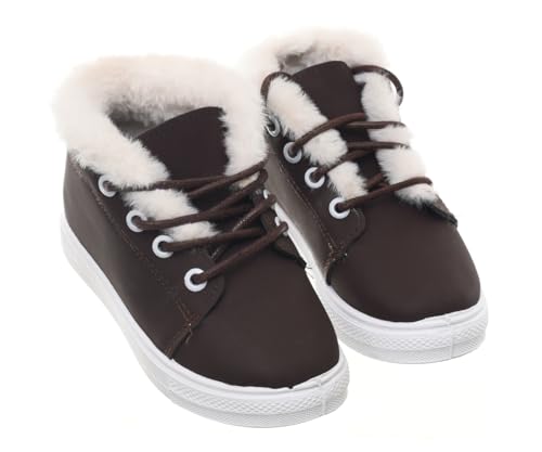 99.99 - 99.99 Girls' Lace-Up Suede Leather Half Boots with Fur Collar