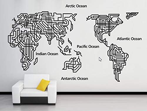 Generic - ملصق ديكور حائط بتصميم خريطة العالم التجريدية يمكنك تركيبه بنفسك