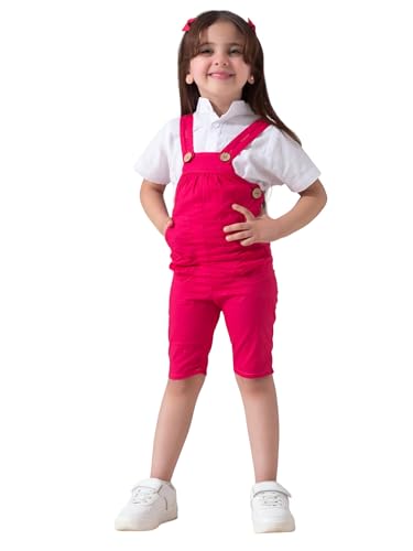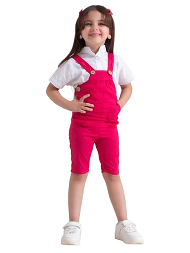 Access - Access Gabardine Sleeveless Jumpsuit For Girls-Fuchsia&White-24-30Month