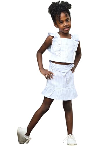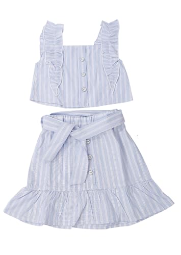 Access Kids - Girls Set Of 3 Pieces Striped Sleevesless Shirt&Skirt,Belt Set Of 3 Pieces (pack of 1)