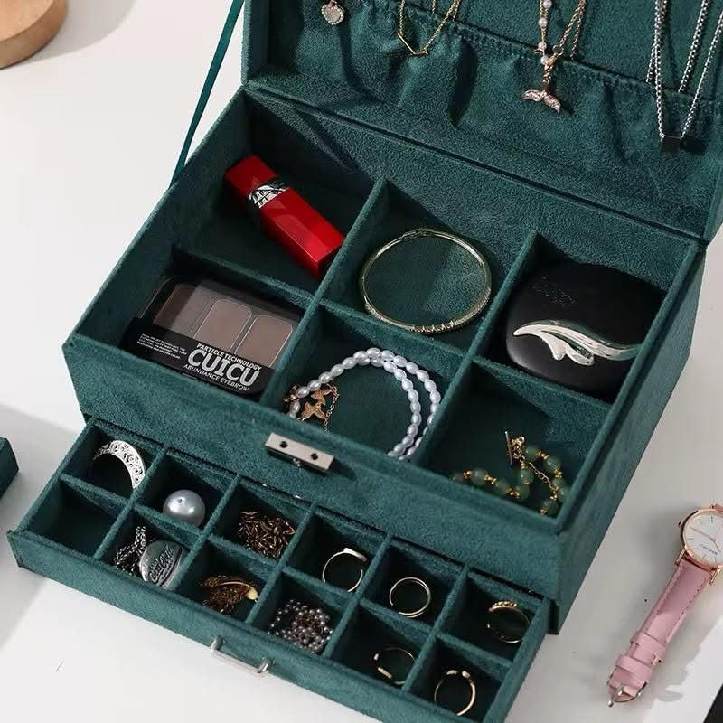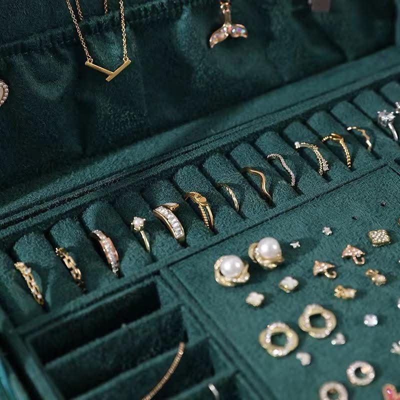 - Ample Storage Space: Unfolding the layers reveals a discreet large compartment, perfect for storing larger jewelry items. The thoughtful compartmentalization caters to various jewelry sizes, from sizable pieces to delicate earrings.