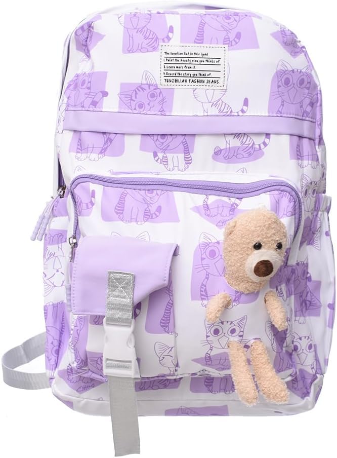 Generic - accessories shop Fabric Unisex Teddy Bear Large Zipper Backpack With Big Front Pocket And Two Bottle Place For Kids - Purple White