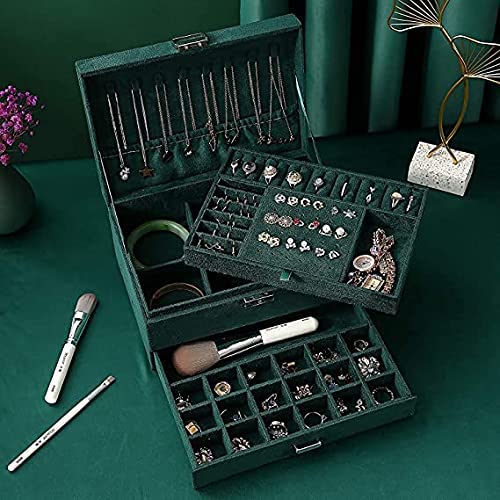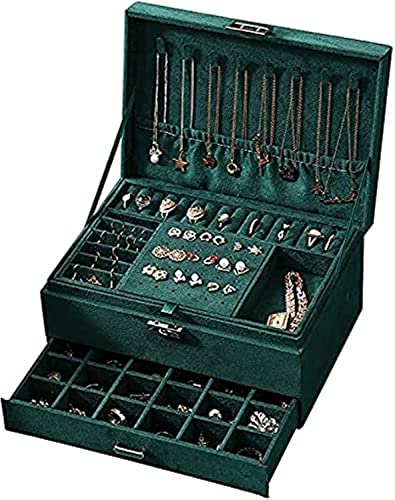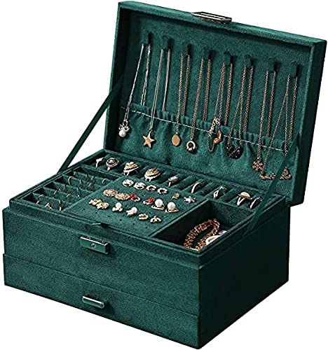 - [Great Jewelry Organizer] Jewelry Box Organizer, Many cubicles Velvet Large Necklace Jewelry Storage Organizer with Drawer Lock Women Jewelry Display Holder Case for Earrings Bracelets Rings Necklace Watches