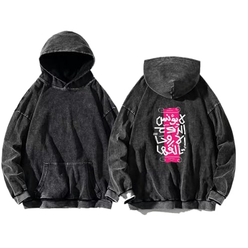 Generic - acid wash gray oversize Youth hoodie back art over size TEXT job work 34 (لا يؤنس الروح الا روحا تألفها) 2