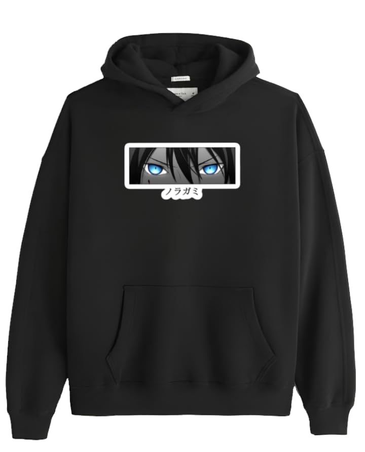 Generic - سويت شيرت بغطاء للرأس كبير الحجم للشباب بلون اسود نورجامي 1