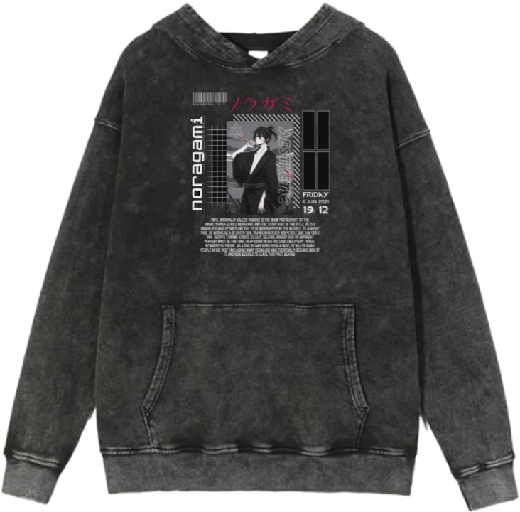 Generic - سويت شيرت بغطاء للرأس نورجامي 2 بمقاس كبير للشباب، تصميم بتقنية اسيد ووش، لون رمادي