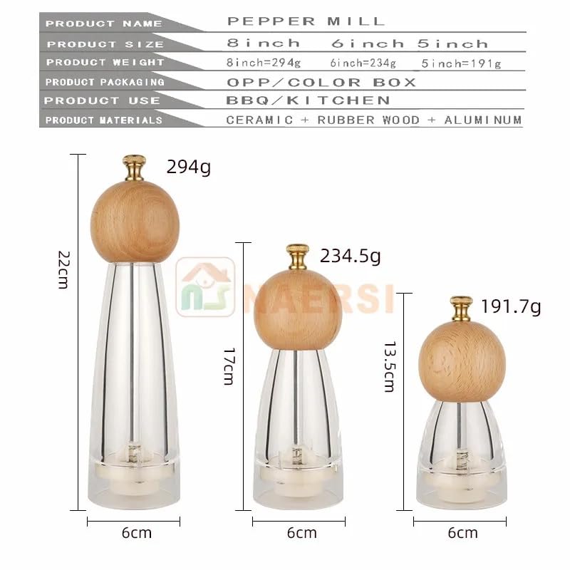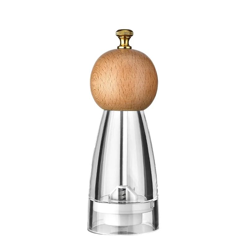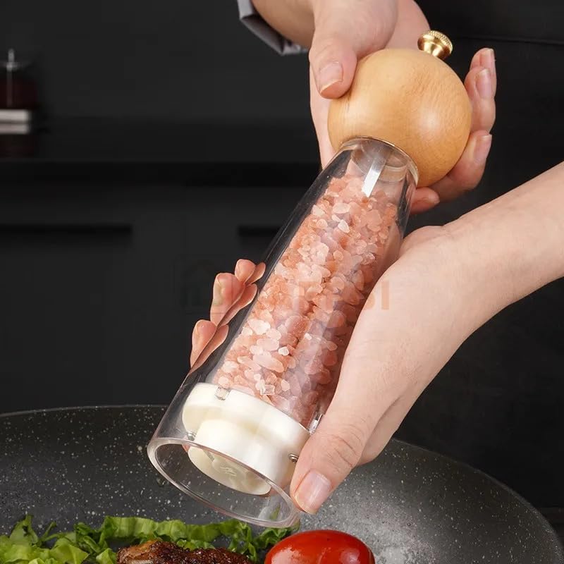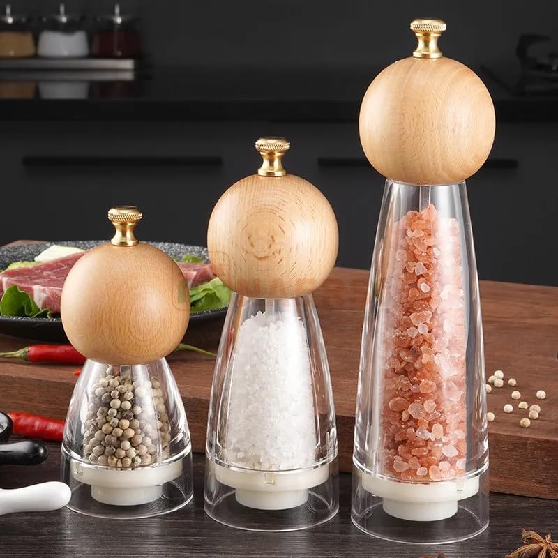 - Durable Materials: It is designed with a combination of materials. The wooden top provides an elegant and comfortable grip, while the clear body is likely durable and easy to clean. The internal grinding mechanism is often made of ceramic or stainless steel for longevity and to prevent corrosion from salt.
