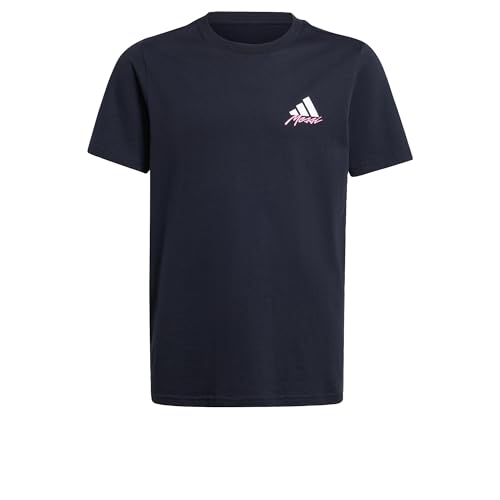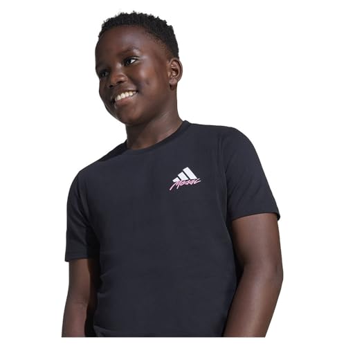 adidas - تيشرت ميسي بأكمام قصيرة مزين بطبعة رسومات جرافيك للأولاد من اديداس