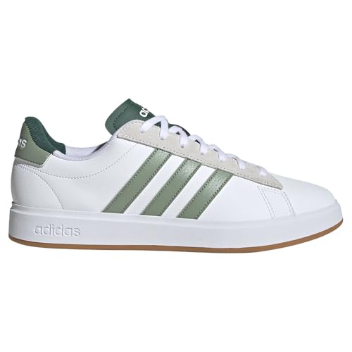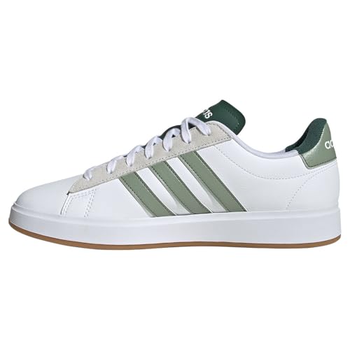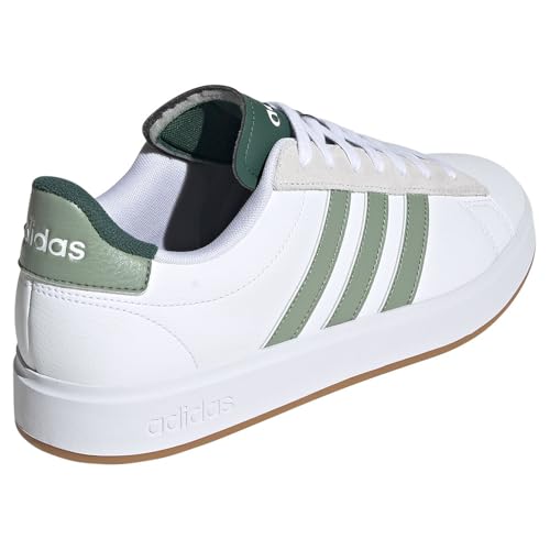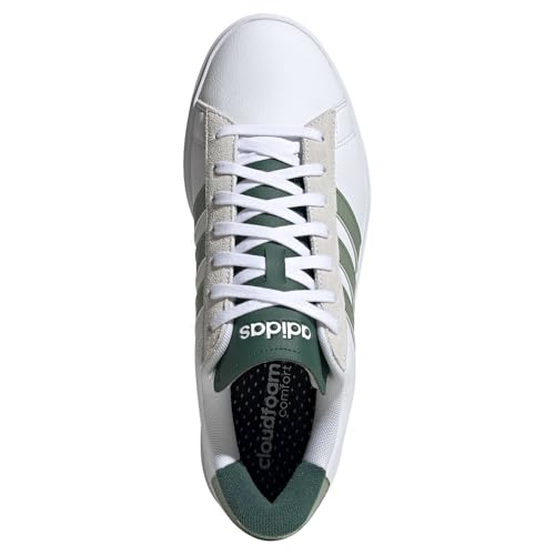 adidas - Adidas Grand Court Base Faux Leather Contrast-Stripe Back-Logo Low-Top Lace-Up Tennis Sneakers for Men - Ftwr White and Core Black, 46 2/3