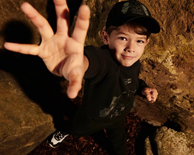 adidas - بدلة رياضية بتصميم ستار وورز بشخصية لوك بطبعة "ZNE" للأولاد والبنات من اديداس، أسود، البوليستر قطن، ياقة ضيقة