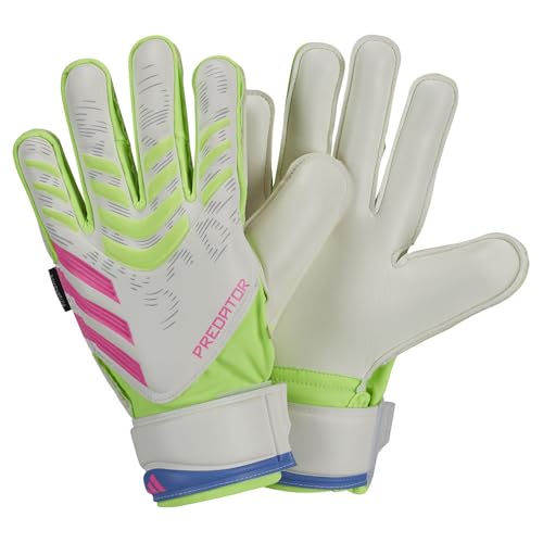 adidas - adidas pred gl mtc fsj lucid lemon,white,lucid pink football/soccer goalkeeper gloves (fingersave) for junior boys and girls size 3.5