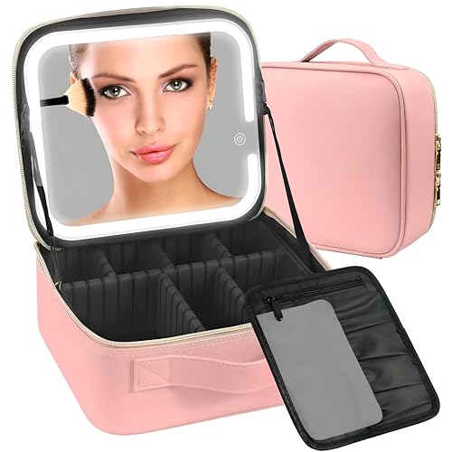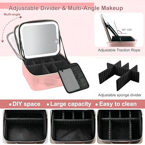 Generic - Adjustable Divider - Deluxe makeup organizer with LED mirror, three lighting options, compact travel case, and customizable compartments to sort brushes, palettes, and accessories.