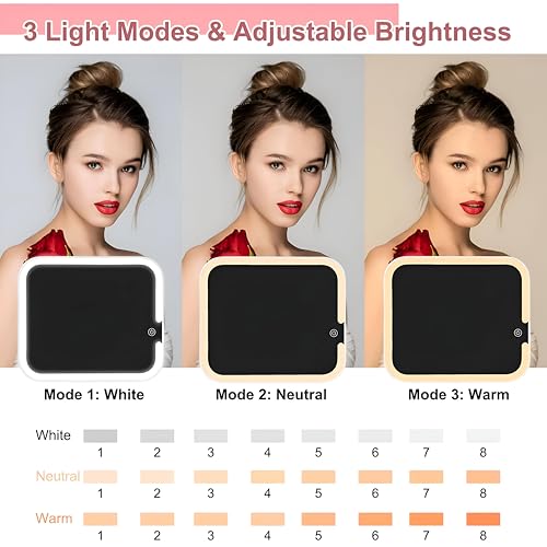 - LED lighting with three color temperatures and 0–100% brightness, all controlled by a responsive touch panel, letting you simulate natural daylight for flawless makeup in any setting.