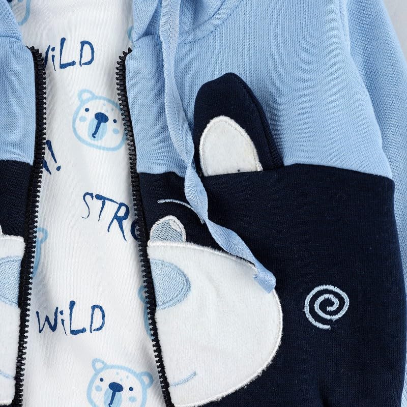 Generic - Adorable Blue Baby Outfit with Animal Hoodie & Pants | Cozy Set for Little Adventurers|3-6 Months