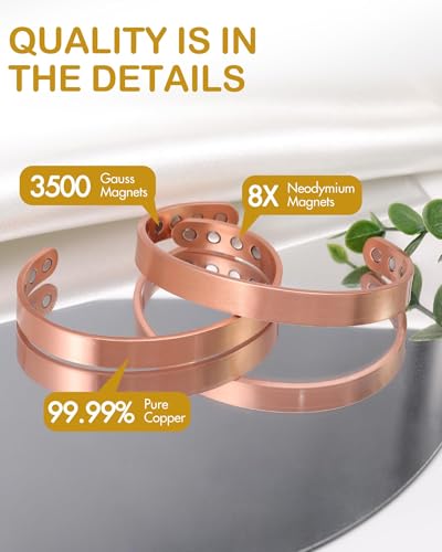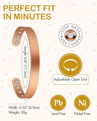 AIWDJ - Pure Copper Magnetic Bracelet for Men & Women – 99.99% Solid Copper Cuff with Strong Magnets, Adjustable Therapy Jewelry Gift, Stylish & Comfortable