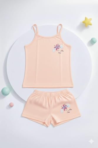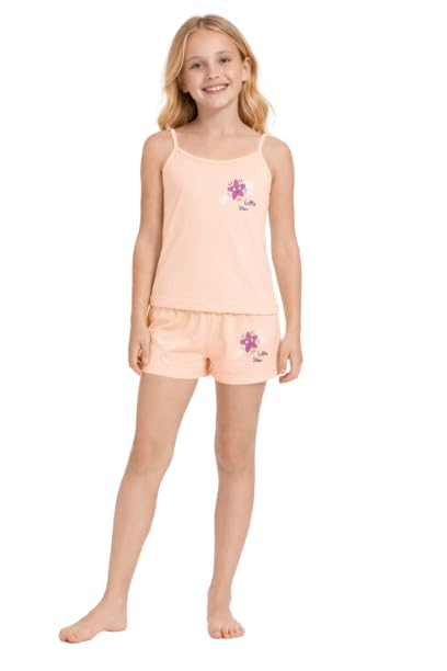 AJYAL - Girls Sleepwear Set, Spaghetti Strap Tank Top and Shorts Pajama Set with Floral Design, Pure Cotton