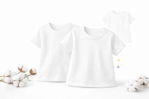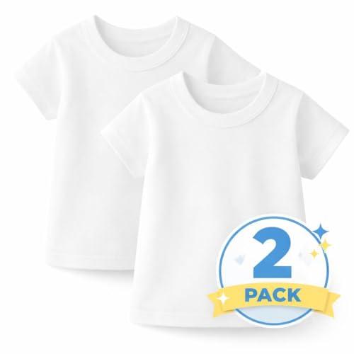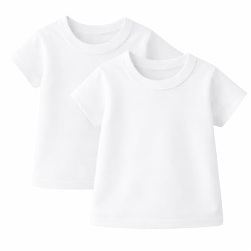 AJYAL - Toddler Basic Cotton T-Shirts, Crew Neck, Short Sleeve, White, 2-Pack, Premium Cotton
