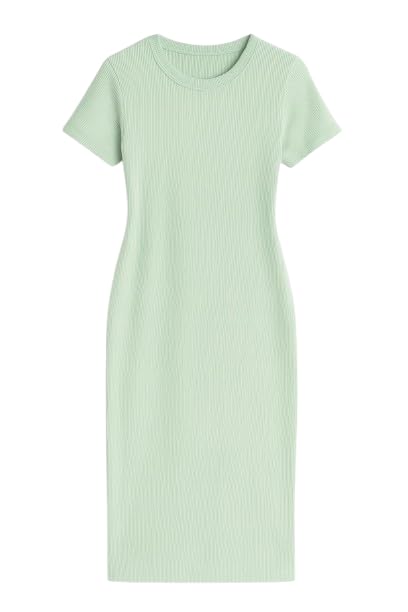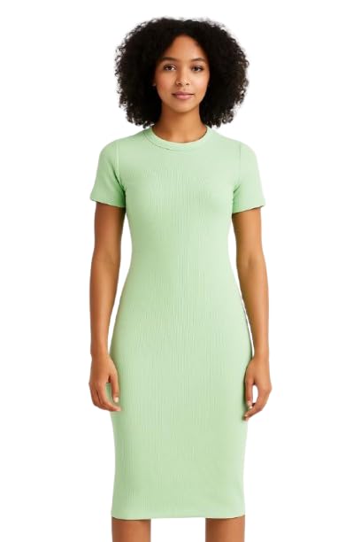 AJYAL - Women Ribbed T-Shirt Dress, Short Sleeve