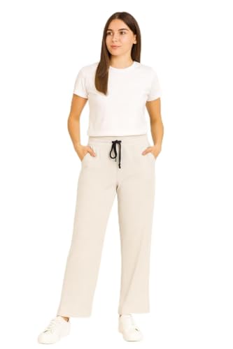 AJYAL - Women's Wide Leg Lounge Pants, Drawstring Waist with Pockets, Athletic Casual Wear, Ribbed Knit