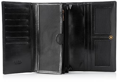 Alfa Leather Co. - الفا ليثر كو. محفظة جلدية ثنائية الطي بلوجو امامي مستطيلة الشكل للنساء