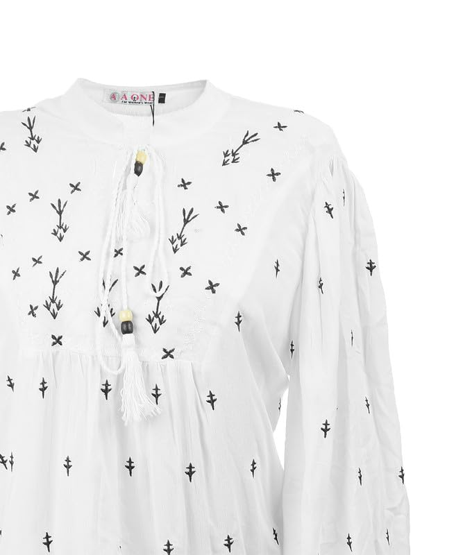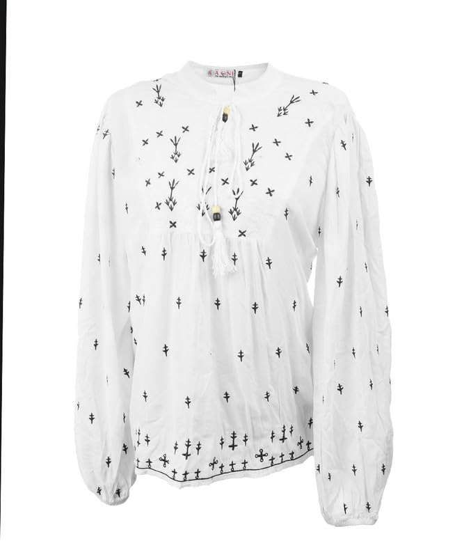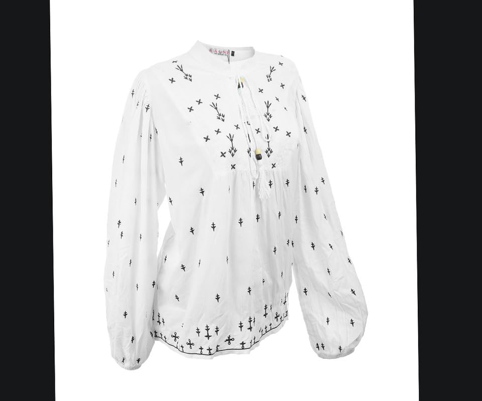 AMANY MAGDY - AMANY MAGDY Women Blouse Embroidered Pattern Tie Neck Long Sleeves