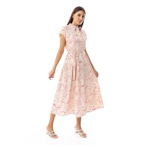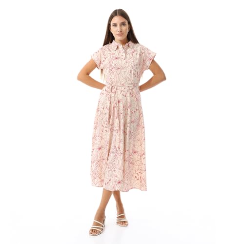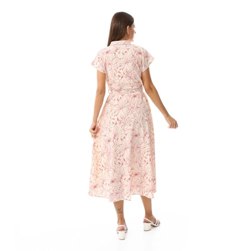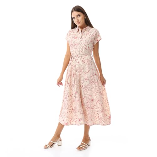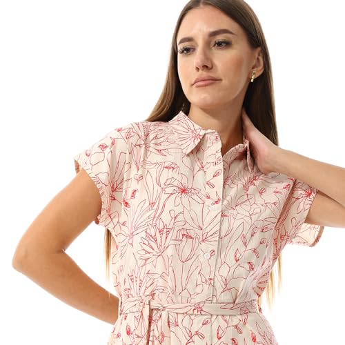 Andora - Andora Floral Pattern Sleeveless Dress - Cream Beige & Red-XL