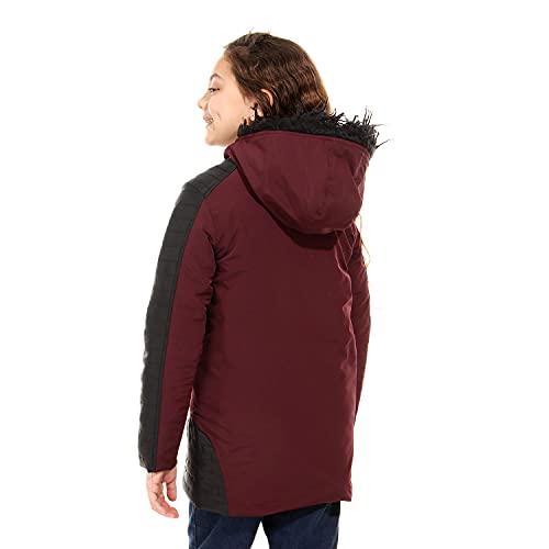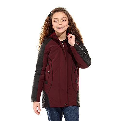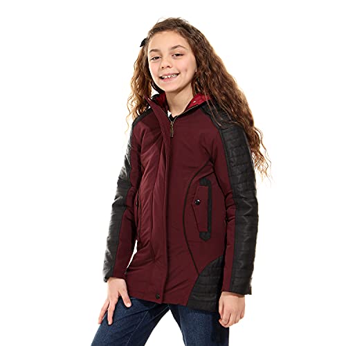 Andora - Andora girls Double Closure Hooded Girls Jacket - Maroon & Black Jacket