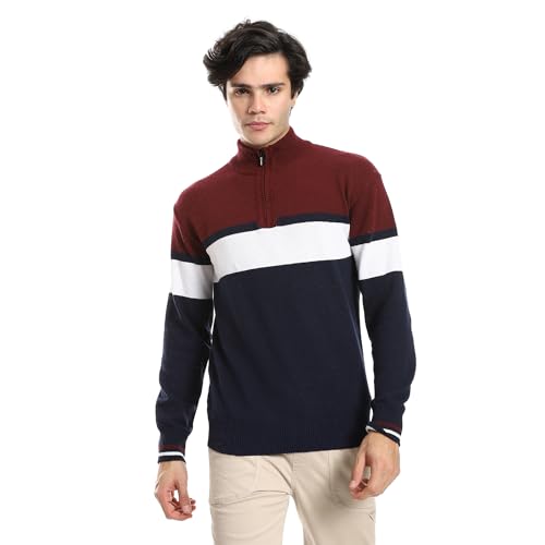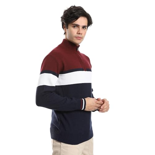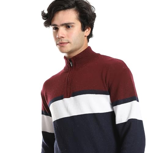 Andora - Andora mens Striped Patterned Slip On With Zipper Pullover Sweater