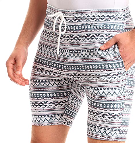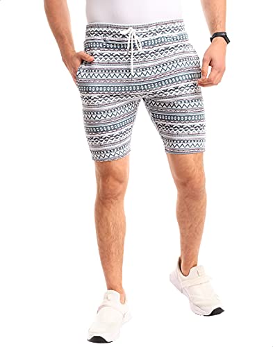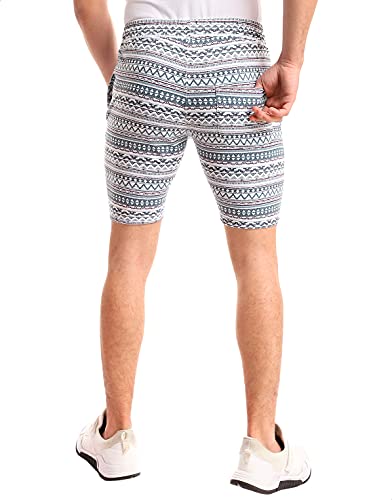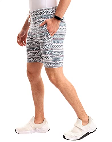 Andora - Andora Patterned Cotton Slim-Fit Drawstring Elastic Waist Shorts for Men - Teal and White, XL