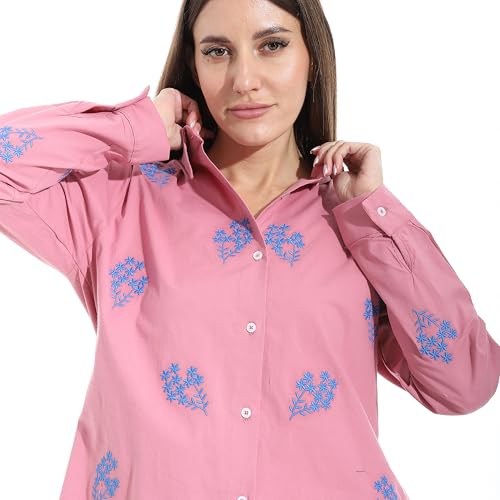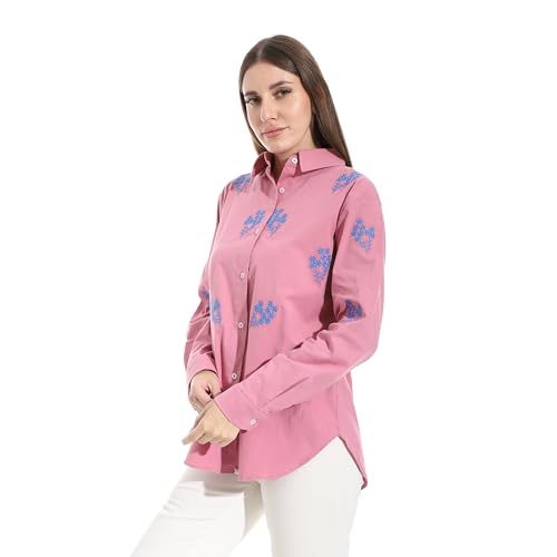 Andora - Andora Womens Embroidered Turned Down Collar Button Western