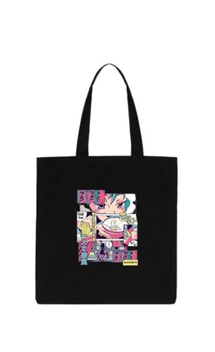 Generic - شنطة يد توت بطباعة نصوص أنمي، لون أسود، 5