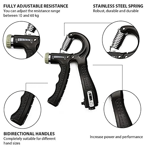 ANSIEDIO - اداة تمارين لتقوية قبضة اليد من انسيديو بوزن 10-60 كجم مزودة بمقاوم قابل للتعديل ووظيفة العد الاوتوماتيكي