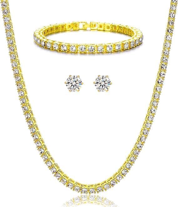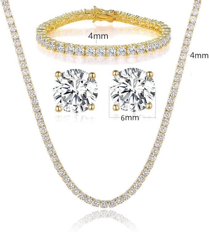 Generic - Antica Brand Women's 14K Yellow Gold/White Gold Plated Cubic Zirconia Wedding Jewelry Set of 3