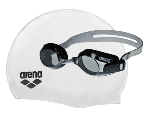 ARENA - طقم حمام سباحة للبالغين مكون من نظارات/قبعة من ارينا، أبيض/أسود
